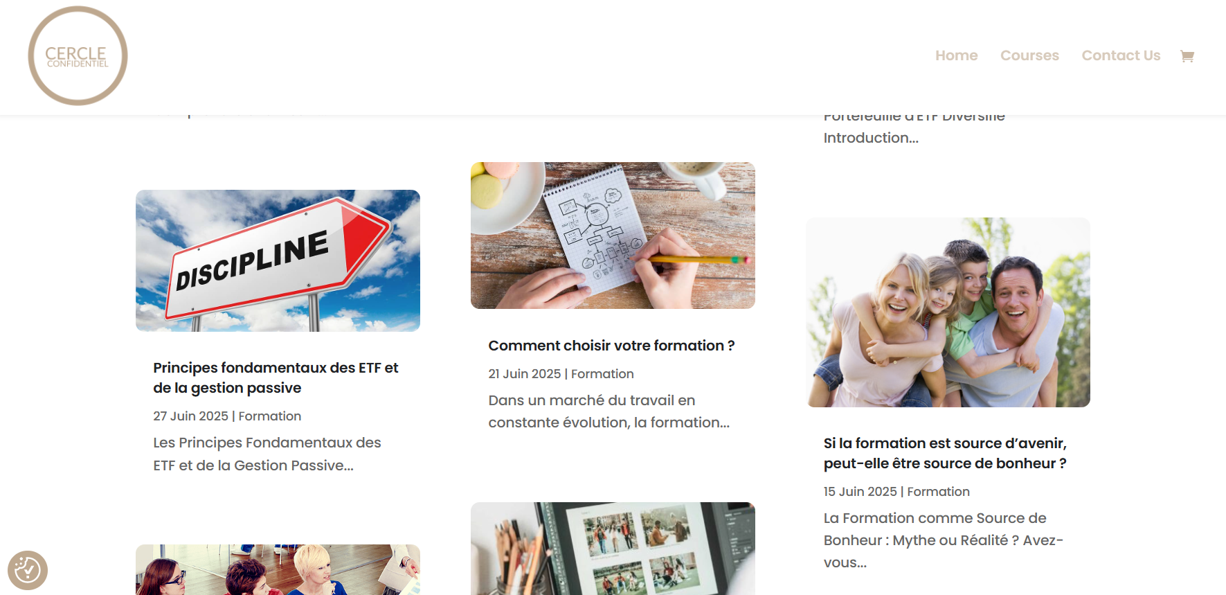 Cercle Confidentiel is a training website. It is an e-commerce website.